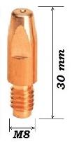 Наконечник сварочный токосъемный Cu-E 10XM8X30X1,2 (d=1,2 mm, 1,6 mm) предназначен для передачи тока на сварочную проволоку диаметром 1,2мм при выполнении электросварочных работ с помощью сварочного аппарата автоматической или полуавтоматической сварки. Медный токопроводящий наконечник Cu-E используется преимущественно для сварки стальной омедненной или порошковой проволокой. Накручивается на держатель наконечника (газораспределитель) при помощи резьбового соединения - М8. Данный наконечник подходит и взаимозаменяем к большинству горелок европейских производителей, а также и к горелкам китайского производства.