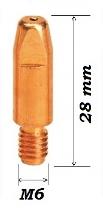 Наконечник сварочный токосъемный Cu-E 8XM6X28X (d=0,8 мм, 1,0 мм, 1,2 мм) предназначен для передачи тока на сварочную проволоку диаметром 0,8мм при выполнении электросварочных работ с помощью сварочного аппарата автоматической или полуавтоматической сварки. Медный токопроводящий наконечник Cu-E используется преимущественно для сварки стальной омедненной или порошковой проволокой. Накручивается на держатель наконечника (газораспределитель) при помощи резьбового соединения - М6. Данный наконечник подходит и взаимозаменяем к большинству горелок европейских производителей, а также и к горелкам китайского производства.